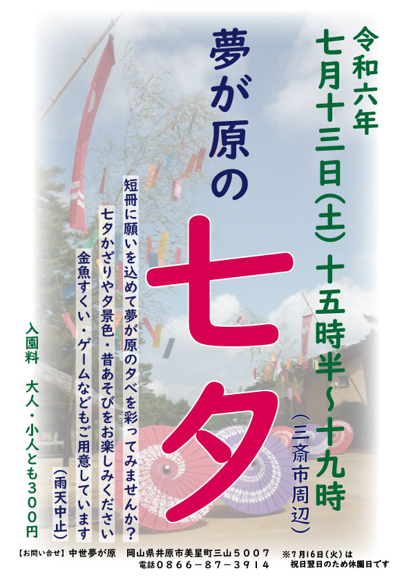 0866-87-3914 中世夢が原へ