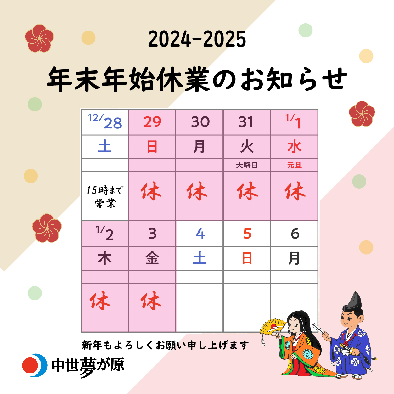 年末年始休業のお知らせ