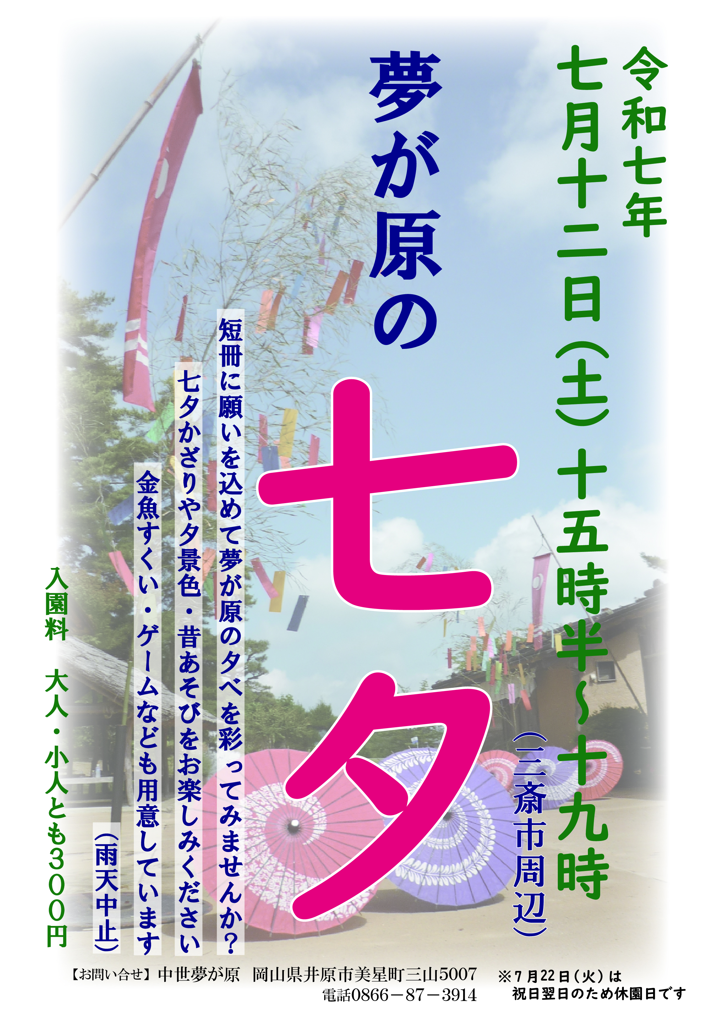 令和6年7月13日(土)15:30~19:00(雨天中止)