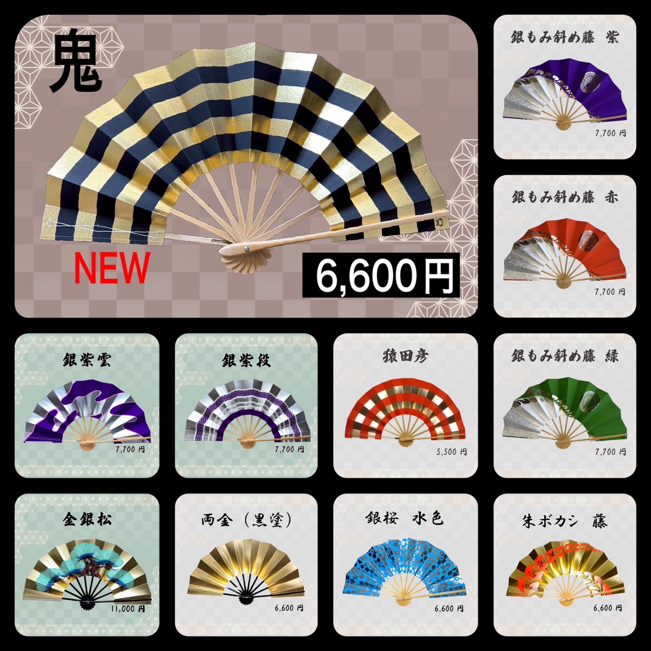 🆕12) 金銀二色藤紋(黒塗)8,800円