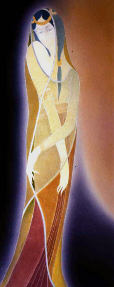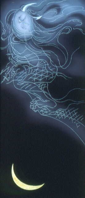 In my works, I express such distress as well as longing for peace of mind,sympathizing with the novel "Rasetsunyo-den"