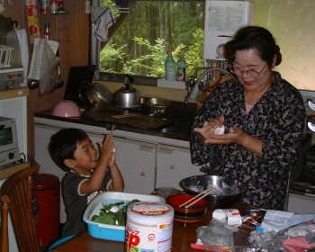 | 山の家の囲炉裏 | 山の家でかしわ餅つくり |