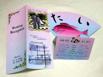 管理人は、結婚式のグッズも自作しました。 ウエルカムボードに始まって、 席次表や名札、正式な名前は解りませんが テーブルの名前を示す扇型のプレートも 作りました。 自作のメリットは、すべてのグッズを 同じイメージで統一できる事。 写真のように、すべての物は 淡いピンクとブルーで作りました。 しかもテーブルの名前は、 魚の名前にしちゃいました。