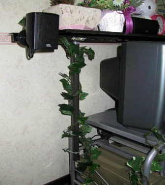DVDを見るために、5.1chのスピーカー システムを組みました。しかし床置き式の 大きなスピーカーは邪魔になるし、 小さなスピーカーは案外に置き辛いので テレビ台の後ろにスピーカー棚を自作しました。 材料はパイプ、アングル、Uボルトなど。 将来テレビが大型になっても 対応可能にしています。 この作品は、多目的総合棚の完成によって お蔵入りとなりました。お疲れ様。