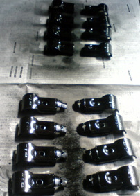 | 次の段取りとして、若干の金属加工が必要となります。 慣れていない方は、友人等に相談してください。 使用するのはメタルジョイントの「HJ-1」です。 そのまま使用したかったのですが、若干の問題がありましたので 改造が必要となりました。 写真の上が、改造前のHJ-1で、下が改造後です。 改造の内容は2分割できる金具の片側は約20ミリ切断します。 もう片方は同じく20ミリ切断しますが、真ん中部分を15ミリ残して その真ん中に穴を開けます。 管理人はM6のネジを使用しましたので、φ6.2で開けました。 その後、15〜20度の角度で内側に曲げてください。 この曲げる作業は必須ですので面倒ですが頑張ってください。 |