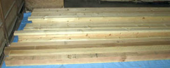 | 9月14日 今日からいよいよ3連休です。 このチャンスを逃してはいけません。 とりあえず、床板を仮留めしました。 写真では汚れて見えますが 下側になる面には、防腐剤を2回塗りしています。 しかし、こんなに材木が曲がっているとは 少々予想外でした。 |