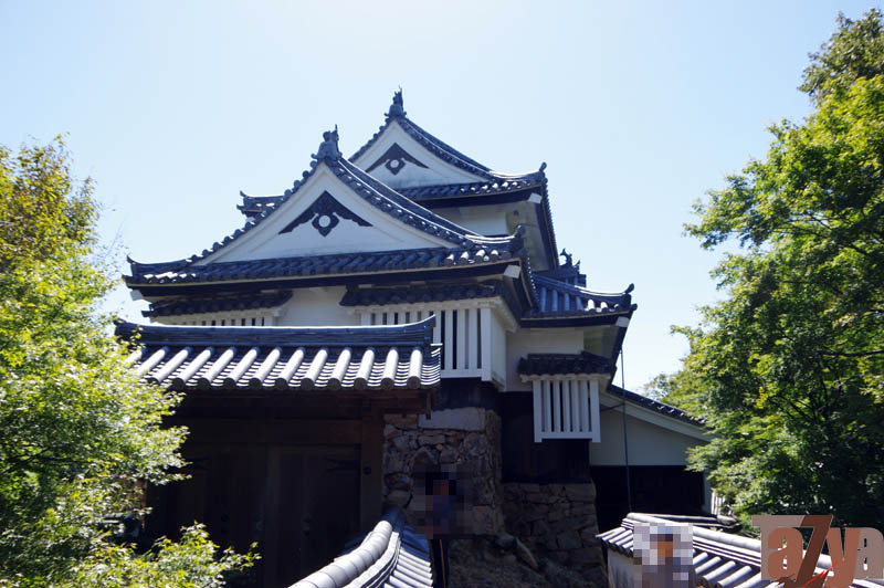 では本丸に行きましょう。この石段の上からは有料(300円)です。 料金所から振り返れば絶景。 奇跡の青空に、見事な写真が撮れました。 近づいて見ましょう。ここにも自然を生かした知恵が。 本丸の中に入りましょう。 ここにも石垣が・・・・ 階段は敵が上がり辛いように、急な上に途中で曲がってます。 普通は火災防止の意味でもありえないのですが 囲炉裏があります。 2階からの眺めです。 いったん外に出て、裏手の二重櫓(重要文化財)へ。 裏手からの本丸は。 隣の山を見れば、以前ご紹介した「天空の城・展望台」です。 これから雲海の季節ですね。 |