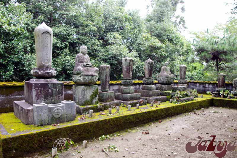 駐車場の脇に「近衛通隆墓参」という石碑がありました。 これは重玄寺の創建が足利将軍家の請願によって公方祈願所として建立されたのですが 開祖の千畝周竹和尚は五摂家の筆頭・近衛家の生まれで、天皇家とゆかりがあるということです。 ちなみに「近衛通隆」とは(Wikipediaより) 1922年〜2012年、歴史学者。後陽成天皇の男系13世子孫。 では雪舟さんの墓参りです。大きな石碑に「雪舟終焉」とありますが『所説あります』。 全景です。昔は広大な伽藍だった記録も残っていますが 現在訪問できるのは「墓所」だけのようです。 この中央当たりに「雪舟さんの墓」があります。 余りに立派だと、後世の人が作り上げた感じになるのですが 他の住職の墓と比べても決して大きくはありませんので、かえって信憑性があります。 下の写真の中央やや左側。 お寺の関係者と思しき方々は。 蝉の声とスズメバチの羽音しか聞こえない静寂の地でした。 |