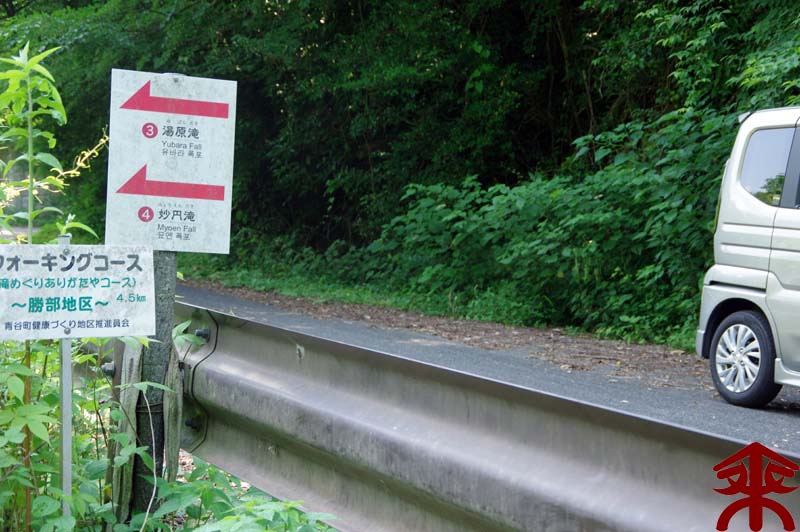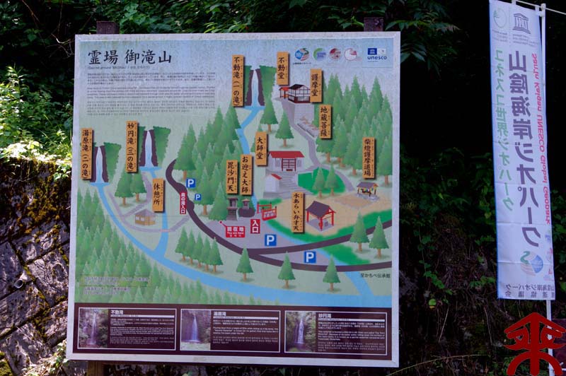 場所の説明ですが、近くに良い目印がありませんでしたので 少し広めに紹介します。有名な「今滝」の東隣の谷になります。 ![]() 案内看板です。一ノ滝:不動滝、二の滝:湯原滝、三の滝:妙円滝が確認できます。 駐車場も間近にあります。中央の大師堂の右を回って登ります。 ![]() ほどなく滝前に到着できます。この写真撮影位置から振り返れば 駐車場が見える程度の距離感です。 では色々な表情の滝姿を。 2条の美しい滝でした。 |