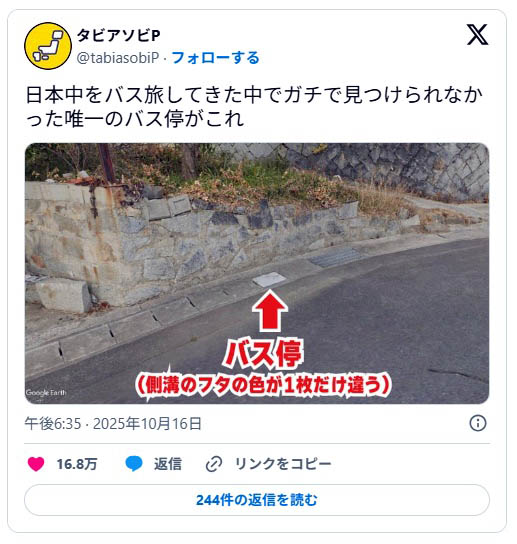 ここで終わってはブログのレベルを疑われます。 バス停はいくつもあるでしょうから、バイクの機動性を生かして周辺の捜索を開始。 同じような「溝フタにバス停」も発見しました。 ![]() 何とか文字が読めるレベルです。 ![]() 次は太陽の位置によっては読める・・・というレベル。 写真よりは肉眼の方がもう少し判読できました。 「ス停」と縁取りが何とか読めませんか? ![]() 最後はもはや「路上のゴミ」状態。 形状以外は何が何やら、さっぱり読めません。 ネットニュースも、このレベルだったのでしょうか? ![]() これはこれで楽しめました。 |