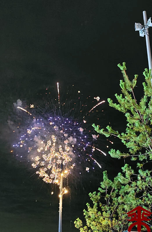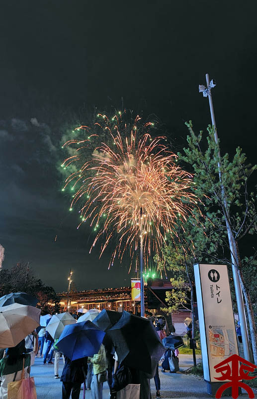 1つだけイベントが予約出来ていましたので、早目にトイレへ。 と思ったら並んでいる時にいきなり打ち上げ花火が始まります。 こういうサプライズは嫌いではないです。 |
