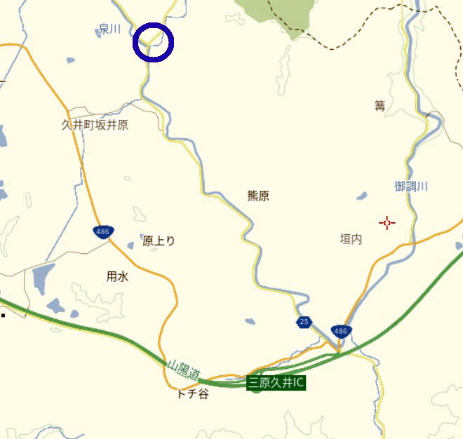 目印としては「三原久井インターチェンジ入口」から北上してください。
