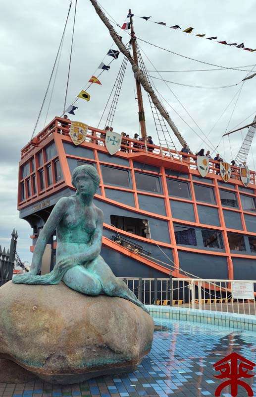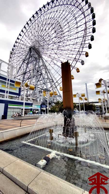 福山駅を出発する時に、鞆鉄道のボンネットバスが停車していました。 なんとなく良い事が起こりそうな、幸先の良い予感です。 ホテルの窓から大観覧車が見えます。この距離ですから夜も楽しめそうです。 せっかくですので、海遊館の周辺も散歩しましょう。 「西はとば」には始めて行きました。マーメイド像があるのですね。 観覧車に行くマーケットの中に、食材サンプルを使ったアクセサリーショップが。 お好み焼きの掛け時計は撮影「可」でした。 では大観覧車を。噴水と1枚、レゴ製のキリンと1枚。 さあ乗り込みましょう。 |