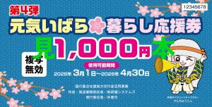 丼原市キャンペーンスタンプラリーイベント開催中! 【全丼だれかの三つ星イバラシュラン】 (令和8年1月10日(土)〜令和8年5月10日(日))。 対象の丼を食べてスタンプ3つ集めたら豪華賞品が当たる抽選に応募できるようです! 合わせて、食レポチャレンジしたらオリジナル缶キャップがもらえるとか!? さらに認定プレートを使ってSNSに投稿したらオリジナルれんげがもらえるんだってばよ! (缶キャップ、オリジナルれんげは先着順数量限定) 【第4弾 元気いばら暮らし応援券】 (令和8年3月1日(日)〜4月30日(木)) 3月より元気いばら暮らし応援券第4弾が始まります! 1000円券ですので定食にもお使いいただけます(おつりはでません) 丼スタンプラリー期間ともかぶっているので是非ご活用、ご賞味ください(^_-)-☆