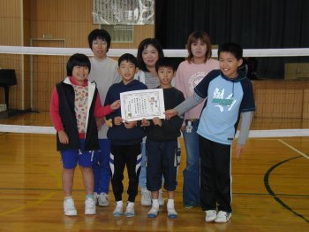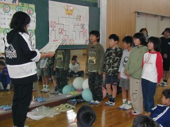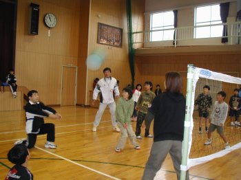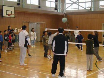 学級PTA活動で4年生といっしょに親子でソフトミニバレーをしました。