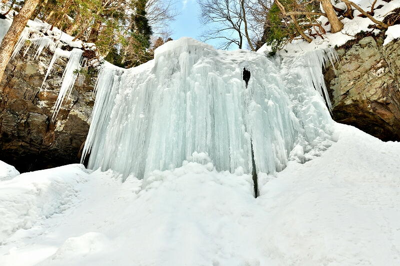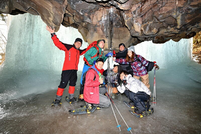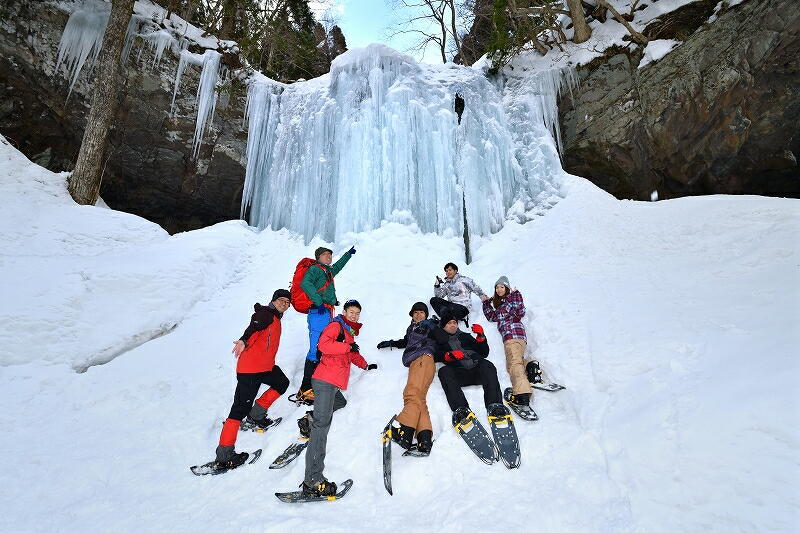 スノーシューを装着して、山道をえっちらおっちら歩いて行かなければなりませんが、この時期ならではの、氷瀑が見れます。