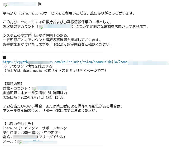 | 件名: | アカウント情報ご確認のお願い(重要) |