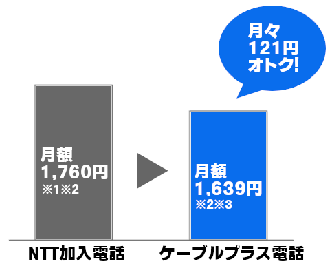 ※ ケーブルプラス電話にご加入の際は、別途工事費がかかる場合があります。