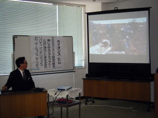 | 誕生日スピーチの竹本さん | 「ライオンズとは」のDVD上映 | ||