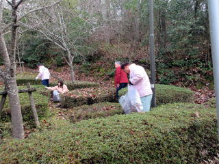 | 12月20日(金曜日)10時30分より井原リフレッシュ公園内にある「井原・ 魚津LC友好の森」の清掃作業を約1時間にわたり行いました。12月に清掃作業をするのは初めてでしたが、サツキの間に植えられた桜の葉や廻りの山の木々から落ちた落葉が多く散らばり参加メンバー一同で清掃を行いました。 | |||