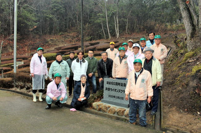| 1月第2例会は井原リフレッシュ公園にある、魚津・井原LC交流の森の清掃奉仕作業を行いました。 認証65周年記念事業として回りの木を伐採し、歩道を直す等再整備を行い綺麗になった「魚津の森」の見学を兼ねて落葉、ゴミの回収を約1時間かけて行いました。集めてゴミは小寺会長自ら高月の焼却場へ持ち込み処分いたしました。 |