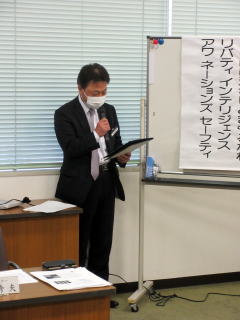| 入会式の左近聖治さん | 左近聖治さんの自己紹介 | ||