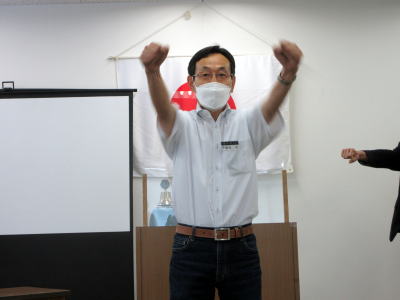 | 誕生日祝いは柳本前会長 | 誕生者スピーチも柳本会長 | ||