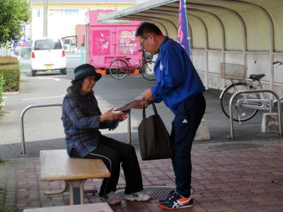 | 本年度も春の交通安全県民運動期間中の4月6日 LCIF社会福祉環境委員会主体で ゆめタウン井原店前で行われた街頭啓発運動に、井原警察署、井原市交通安全対策協議会と共に交通事故対策として反射板やLEDライトを来店者に配布しました。 | |||