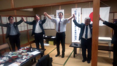| 新旧3役 | 乾杯は阿部前会長 | ||