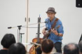 ライブでは、宮本さんはパーカッションで独特のビートを刻み、観客を魅了しました。彼女の手から生まれる音の多彩さと、リズムの複雑さです。観客はその技術に引き込まれ、まるで音楽の旅に出たかのような感覚を味わいました。 梶山シュウさんのベースもライブに色彩を加えました。彼のベースラインは、宮本さんのリズムに絶妙にマッチし、二人の演奏が一体となって会場を盛り上げました。「港の見える丘」や「さらば恋人」などを歌いながらベースやギターをプレイ、時に激しく、時に優雅で、まるで語りかけるような音色を奏でました。 特に、即興演奏のセッションでは、二人の息の合ったパフォーマンスが見どころとなり、観客から大きな拍手が送られました。 |