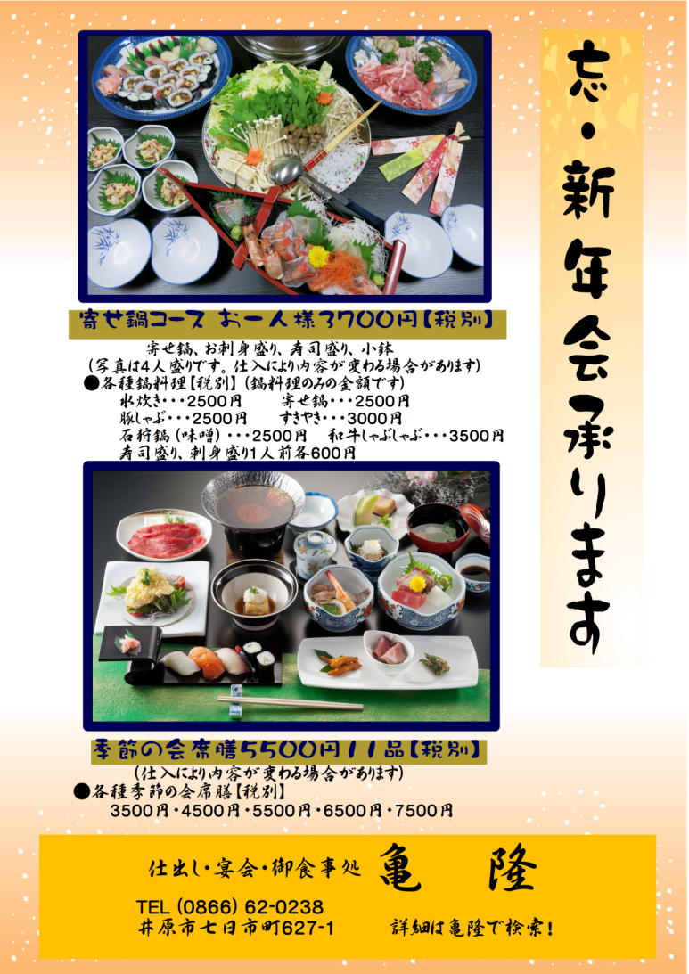 だんだんと肌寒くなってきましたね。みなさんで集まって暖かい料理を囲んで楽しみませんか?と言うことで本年度の忘・新年会のご予約受付開始いたしました。
