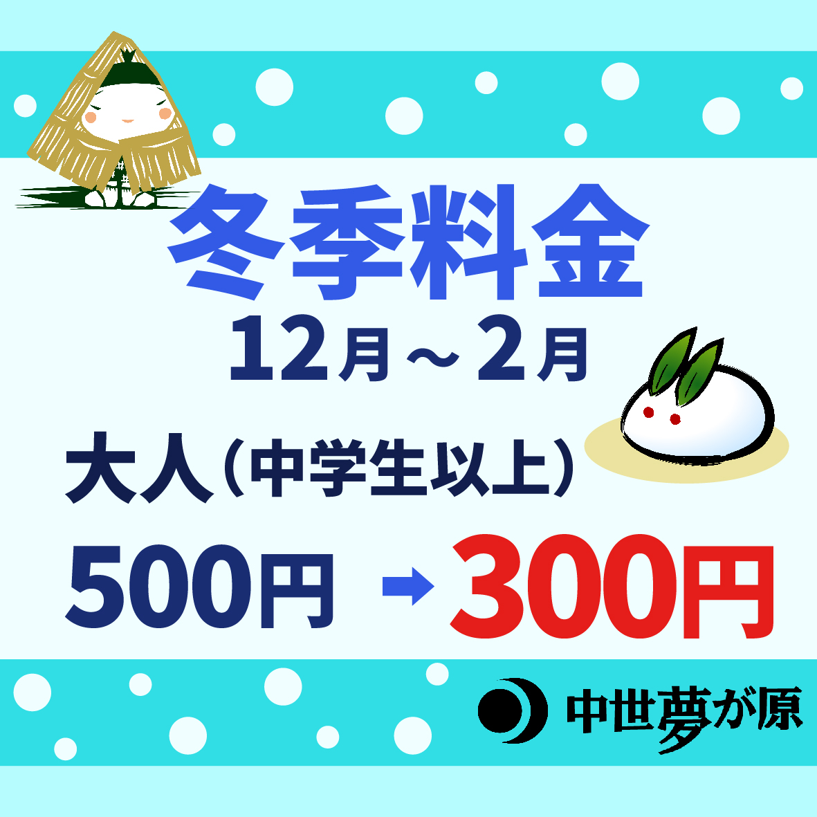 12月から2月までは小学生以上300円です