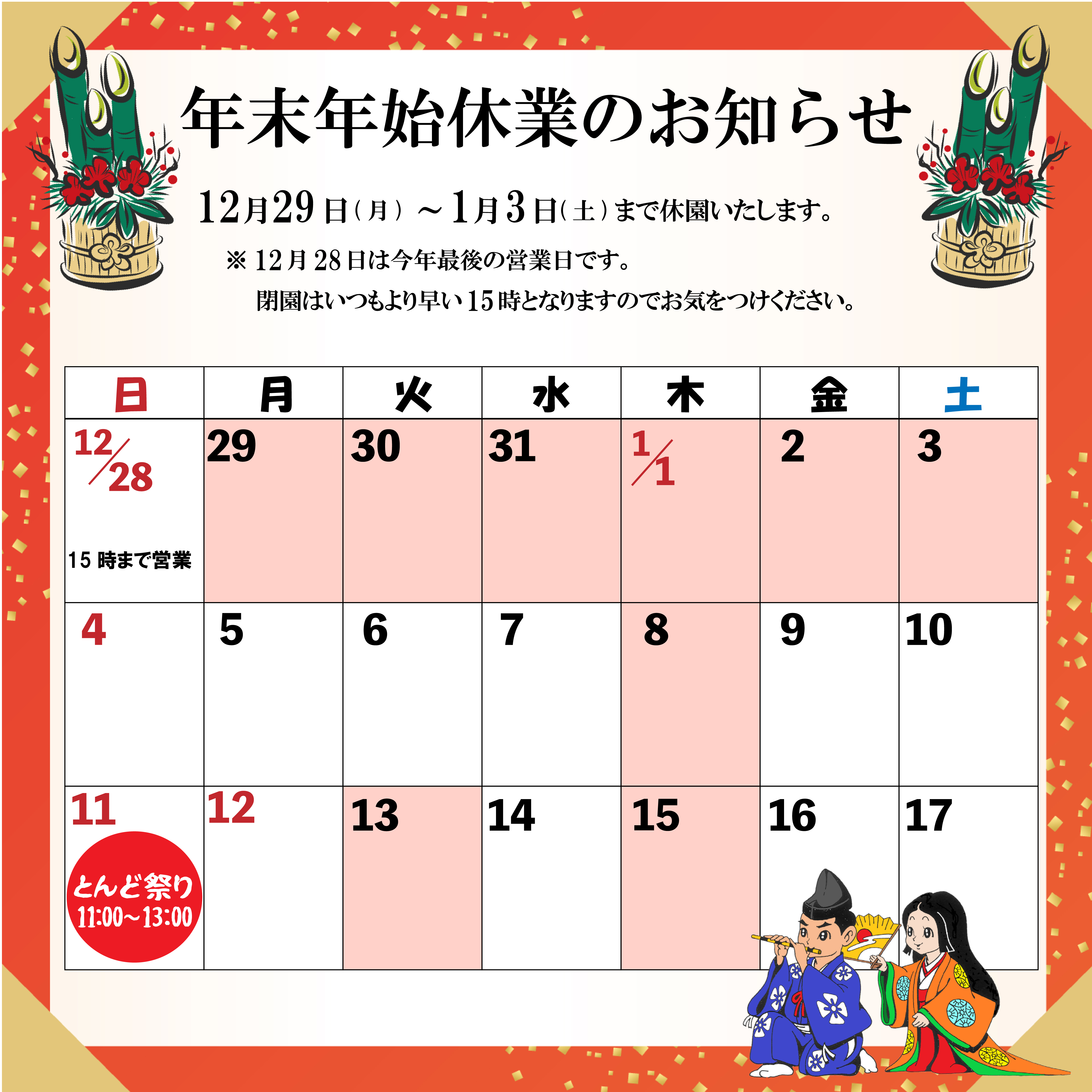 年末年始休業のお知らせ